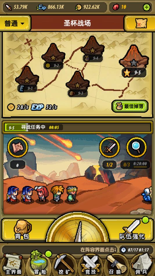 各位冒险者:《冒险与挖矿》已经上线有一阵子了,在大量的老玩家回归之余,也有不少新玩家涌入,因此,我们将会持续发放一些新手攻略,让新玩家阅览,本篇攻略由玩家投稿,仅供参考,若有不正确之处,欢迎大佬指教~我们每次进入一个新地图之后会有一个“寻找任务”的倒计时(越往后面的关卡这个时间越长),在探索完成后可以点击画面正中心的“战斗事件”进入本地图的boss战。每个地图的战斗事件都围绕一个主题,而且都