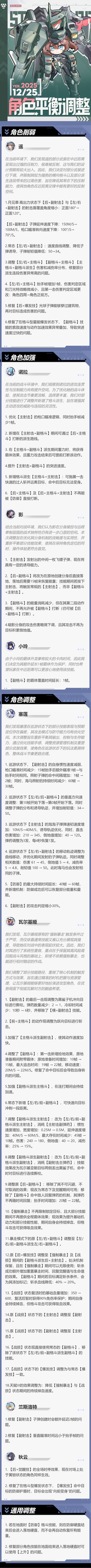 各位团长好,为了让团长们有更好的游戏体验,我们决定在12月25日游戏更新后对部分角色进行平衡调整,改动如下:#星之翼 #机甲美少女 #格斗游戏