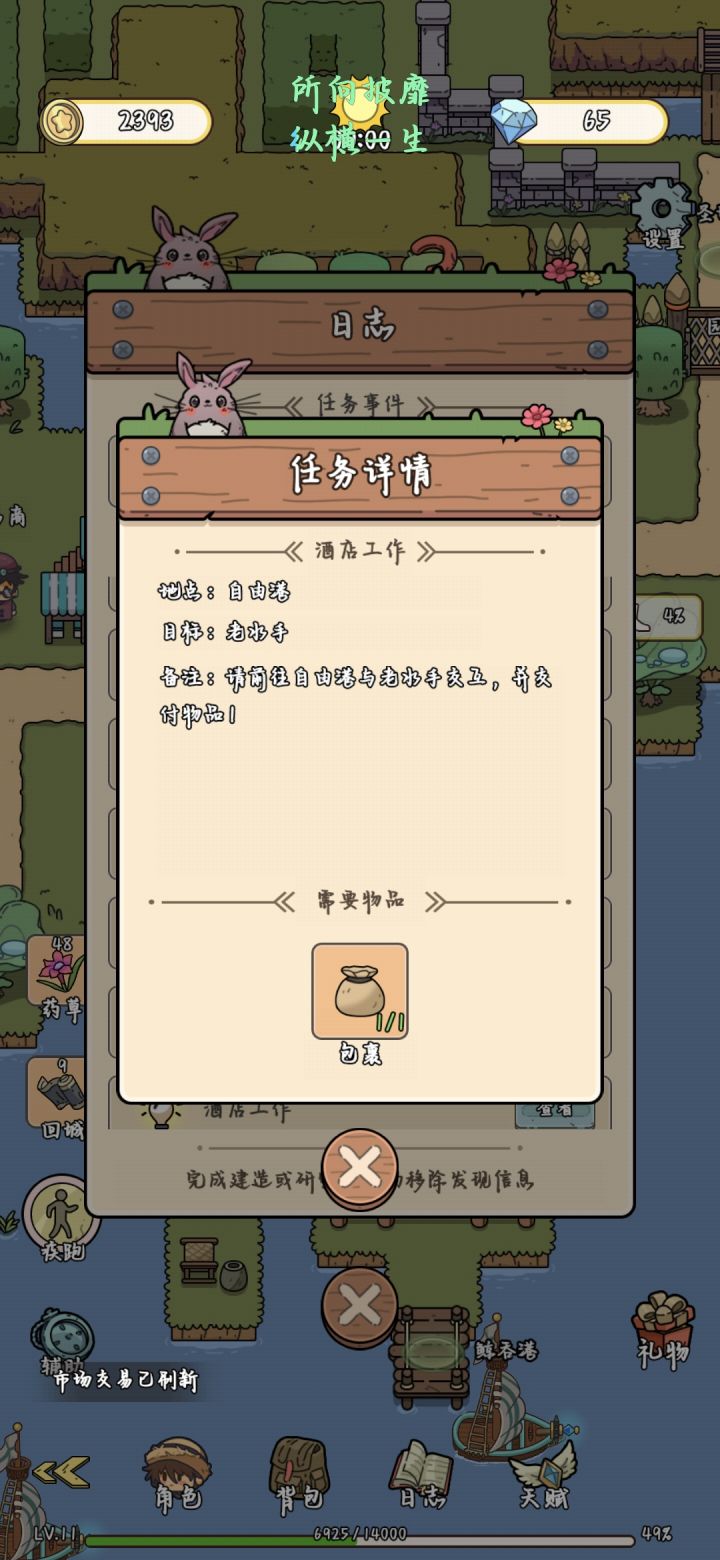 先接了是老人与鱼的任务,就没有办法交付酒店工作了,包裹在背包里交不了,卡了😓
