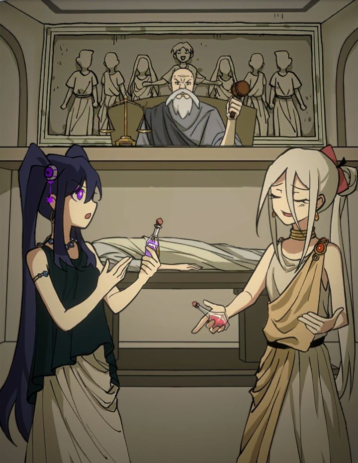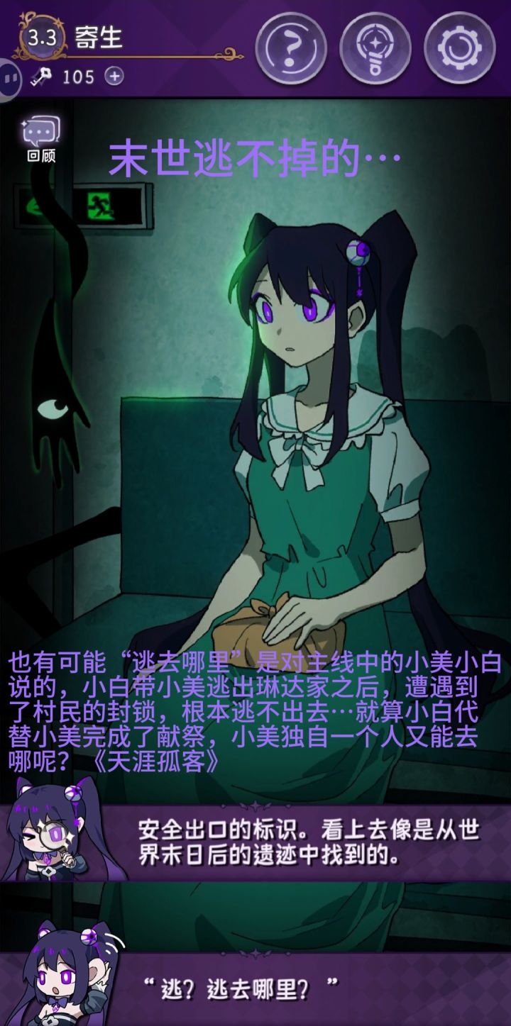小白最后代替了小美完成献祭。小白被绑在木桩上,大火吞噬了她。小美获得了自由也失去了小白,她成为天涯孤客。—————————————————————时间线回到游戏开始。在应许之地,失去了全部记忆的小白遇到了失忆但还是自来熟的小美,又和小白成为了同行的人。为了在路上有事可做,小美拿出了她在垃圾箱底下翻出的故事书,这本故事书里有很多个故事,但共同点都是没有结局(所以我们的游戏主要玩法,就是通过收
