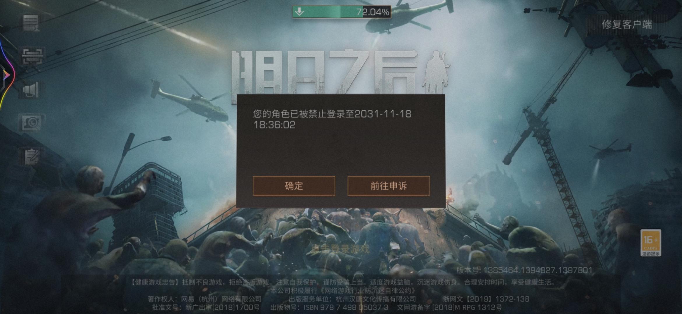 垃圾游戏,刚创个号到新手教程提示封号10年,呵呵