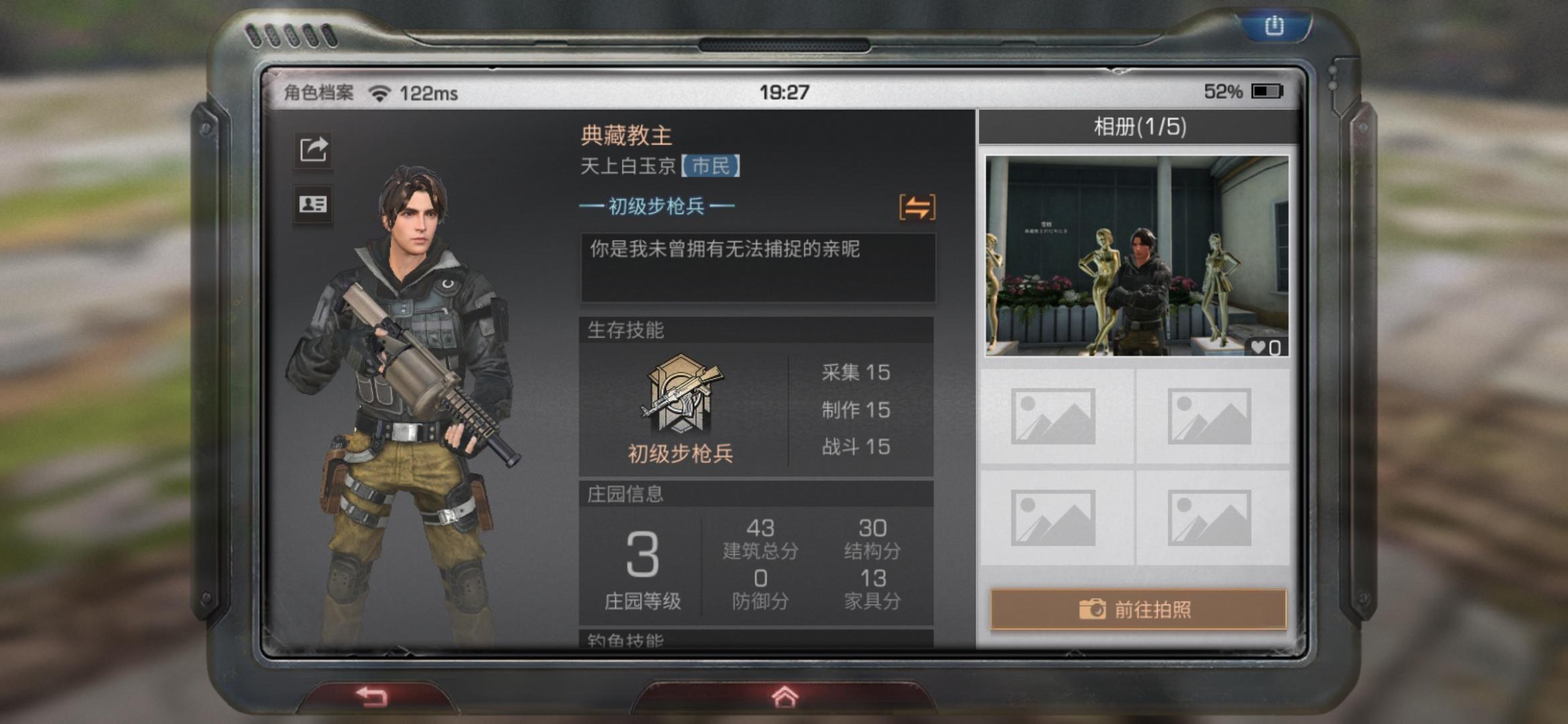 肝了11天明日之后,发现不充钱不行啊,今天又被屠营了。还是个氪金5庄的。营地都蒸汽时代了。顺便交个朋友ID: