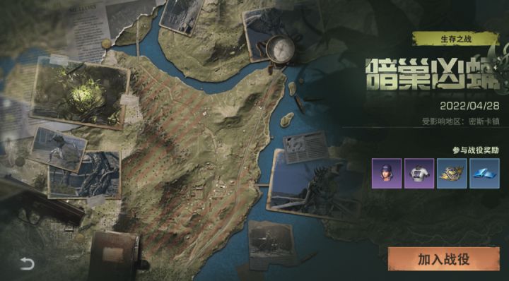 各位幸存者大家晚上好鸭密斯卡镇最近怪象频出联盟已派出探索小队前往调查花巢之中似乎有神秘的生物正在孕育植物危机已然爆发这些异常现象背后隐藏着怎样的隐情呢快跟明明一起探索吧暗巢凶蛹4月28日暗巢凶蛹开启采集、战斗、制作等级均达到15级的幸存者可加入战役生存之战为跨服玩法开放跨服好友、跨服组队功能幸存者们可与其他服务器的幸存者一同参与战役战役目标加入战役后每日可前往密斯卡镇完成3个战役目标同时还可