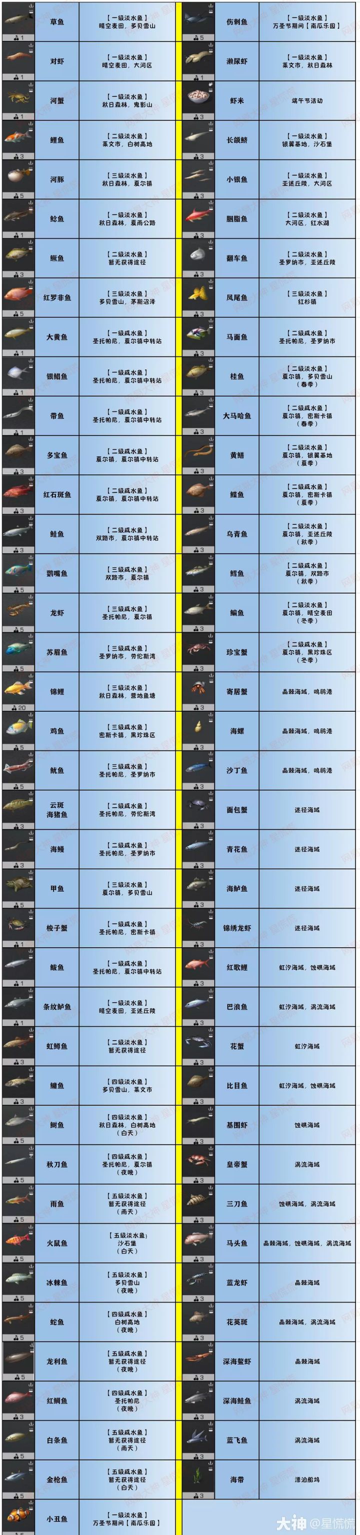 💎鱼类食材💎肉类食材💎水果食材💎蔬菜食材✨附注💎上图仅呈现各种食材的主要获得途径,部分食材也可在各种活动及其他玩法中获得。💎部分食材可直接在交易之城中购买,也可在各地图采集队处兑换。💎图中所述的天气、季节、昼夜等均属游戏世界观,与现实世界无关。