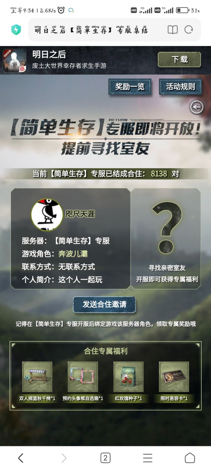 有没有想体验一下的!! 怎么说呢,这个游戏给我回忆还是蛮多的,我也算是老玩家了,因为对末世生存类的游戏题材很感兴趣,从它刚出就开始玩了。就是因为现在这玩意儿越来越花里胡哨了,没有末日生存的感觉了才退的。 它这个简单版要出了,老实说还蛮期待的。如果有和我一样想法的明日玩家的话,可以组个队一起呀,到时候还可以领预约奖励!💥💥💥