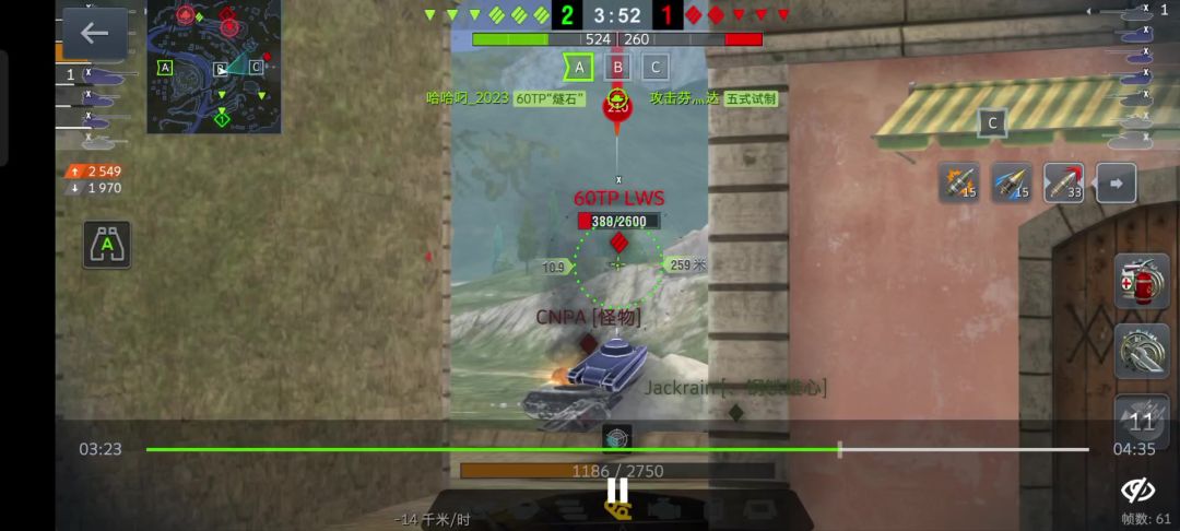 王总113加穿369的金币弹可不跟你嘻嘻哈哈,近距离瞄E3头包的时候要瞄头包的上半部分,瞄下半部分是没用的,而且可以打E3左边眉毛部分的观察口,打中必穿(有点小不好打),穿深不够可以高爆糊头包。