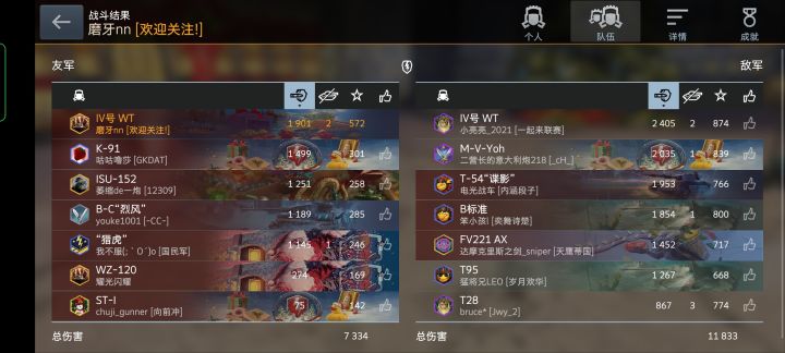 这环境还怎么玩 玩的葡萄庄园 遭遇战 对面t54开局就占旗都到七十几秒 发了几次防守基地 前面的没一个动下窝打断占旗 我一个td从后线冒着强亮被打的风险 去打断t54 我也被对面四运打了一发 自己剩半血 t54被我打残血没人收 我强收T54挨了他一发 我就是脚指头玩的 不到两千伤都能第一 我要删游戏了