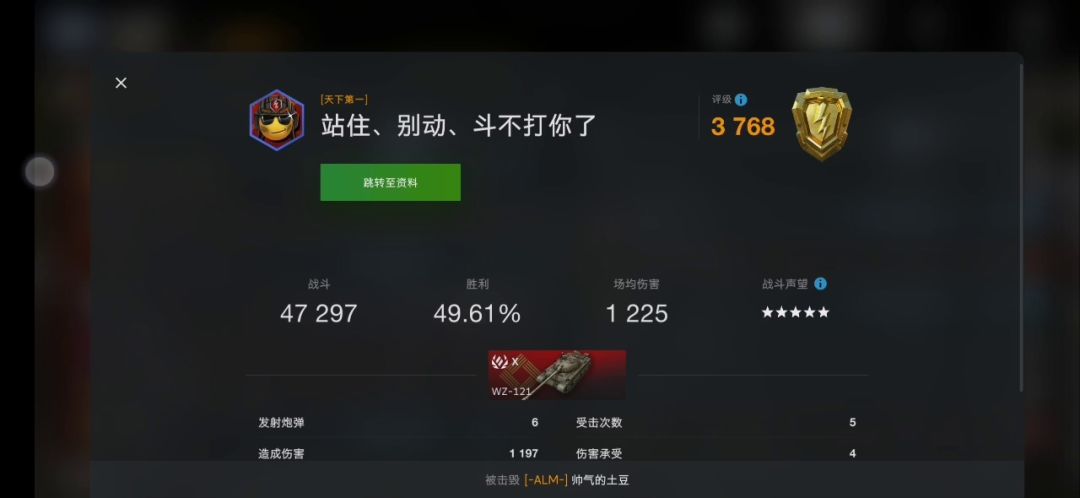 今天把虎王打出来了,跳了炮塔和炮,萌新时期觉得虎王好nb,正面全红,现在上手了觉得屁都不是,遇到高级车正面被乱穿,坦歼乱穿,低级车上金币弹还是被乱穿(别跟我提歼灭者),也就能欺负欺负低级没钱带金币弹的萌新。80毫米侧面的稍微有一点角度就被乱穿,断带加掉血,加穿的152高爆都能直接糊穿侧面,残局如果出现一打二的情况,只要不是血量差距特别大直接双手离开屏幕等死就行了。头包不用顶牛,近距离交战都能被打中
