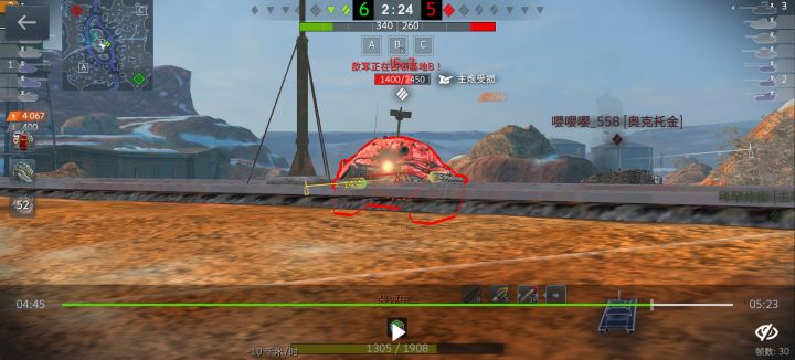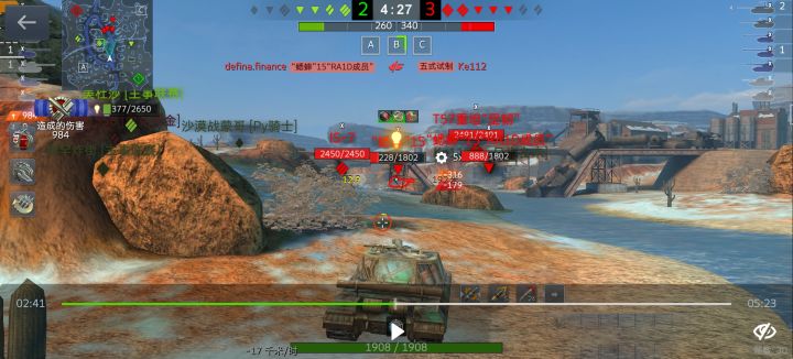 第二个问题,开局重坦去岛,我在去C点发现不对后半路刹车回来打对面抢岛中坦,然后再换位置找机会打对面露头蟋蟀。在去另一边途中发现对面过来抓我方蟋蟀,而这个草丛可以打到对面两个蟋蟀和T57,我最后也在这干掉两个,剩下一个帮队友点亮干掉了,最后和队友一起打杠七。