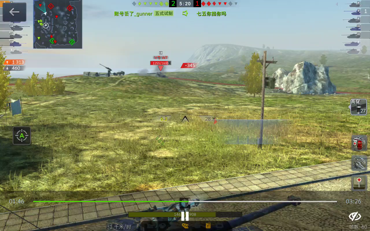 哎呀 本来赢了能拿好几千经验的就这么输了残局两个坦歼两个重坦本来是能赢的 在和这个704工程看见人头就站不住脚 人家交叉火力架死了 (啊 不过对面是分数获胜的 我到最后也没有挂掉 )