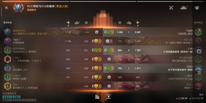 今天开狮子出门打钱把了个妹,对面E75神奇走位,白给之后直接开骂,对于这种人我内心毫无波澜,嘴臭孤儿见得多了他骂又不影响我1v2翻盘,出来给差评也能接受,直到我点开了他的数据。。。???这种人能51胜率?就算不是一个人在玩,白板75这点伤害比率能有这的胜率?我见的孤儿不多,这个人属实给我整迷惑了,莫非有氪孤保护机制?