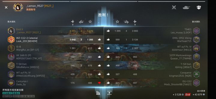 我承认我菜,但是这把我好歹在最前线(除了我跟对面已经互射几炮以后有一辆武德充沛到炸裂的豹一直接冲进重坦坦歼堆里暴毙)还打了输出第一,而且这把是我们这边除了60tp全白怪(包括我),对面除了刀锋全绿的,我才刚买车没连胜呢😭打到一半这183又开始骂,说重坦跟60tp都是垃圾,裂开