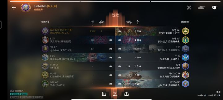 e75这辆车是真的没办法玩,碰到10级房,你对面的重坦能打穿,但是你很难打穿他,轻坦中坦,轻轻松松欺负你,就算有时候运气好在低级房能扛一会儿线,你扛的时候队友已经死光啦!!你就眼睁睁的看着人家在已经劣势的情况下上去抢对面残血,被对面残血一炮带走。你就眼睁睁的看着队友一个一个的消失,就剩下你在那里扛着线,抗nm!!!