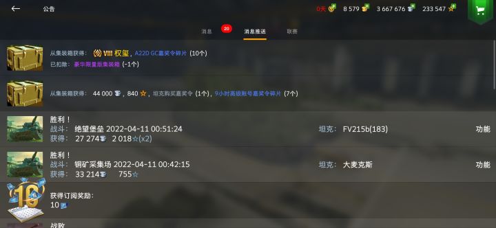 今天又没忍住微氪了一下,27块钱一辆260,再加上几个钥匙开907箱子碎片换了kpz70和stg哈哈哈😽