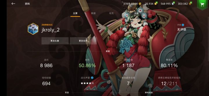 玩了断断续续有一年了吧,也氪了不少,数据并不好看,目前就是觉得到了瓶颈,技术也不咋提升了,这游戏和单机无异,孤儿还多(当然有时候我也有些犯病),想找些好友一起玩联赛,最好是能语音交流,能带我技术进步的那种😁😁😁😁,最后附上个人信息