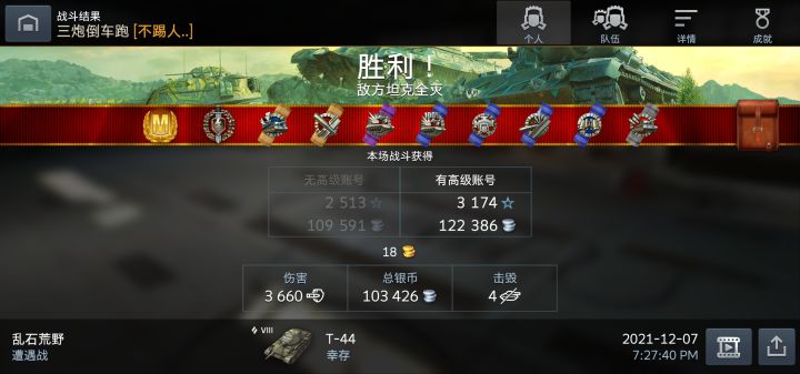 晚安萌新离第二个9级车又近了一点好像是T54来着,10级车是T62A