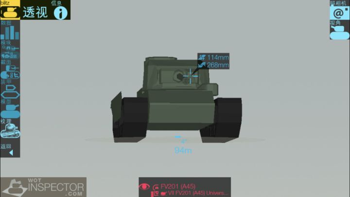 历史:FV201(A45),由英国电气公司于1944年研发,是用以替代“A43黑亲王”的新步兵坦克研发计划的一部分。由于坦克作战理念的转变,并未进入军队服役,但是它为战后HT研发打下了基础。 一些组件与A41百夫长坦克通用。在1948年原型车开始试验,安装了百夫长坦克的17磅炮。装甲:头部装甲 可以发现,A45的头在7级房及以下是十分坚挺的,除了虎式虎P等高穿高精度炮可以造成威胁以外,基