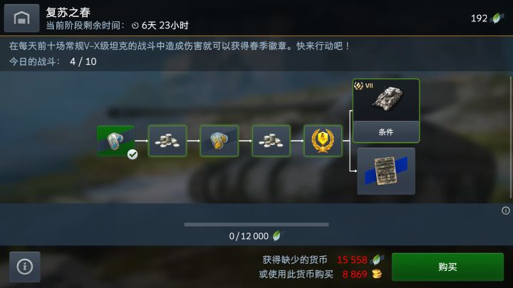 如图,在新活动中,获得坦克需要16000徽章,一天计算前十次战斗,每造成10点伤害获得一个徽章,活动总共持续七天。也就是说,16000÷7÷10×10=2280正常免费获取需要每局打出两千多伤,那么萌新或者技术不好的就很难获取。经过简单的数学计算,可以得出,一个金币=1.75徽章,假如你每局能打一千伤七天下来你能有九千叶子。16000-9000=70007000÷1.75=5142也就是说每局