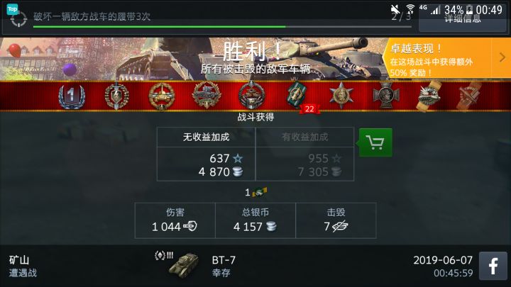 击毁七辆坦克(艾森拉尼勋章,可成长勋章),毁灭者头像(可成长头像,最后非常酷),你,值得拥有!可惜我国服最多6杀