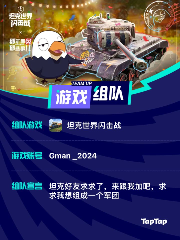 🚩游戏组队 ID:Gman _2024 宣言:坦克好友求求了,来跟我加吧,求求我想组成一个军团 #噗噜噜实验室