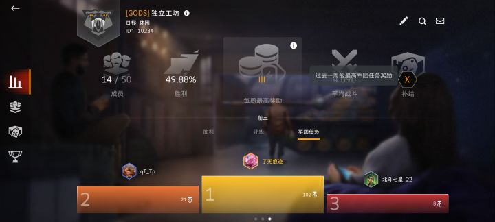 本团每周团任务可打满团内气氛和谐国内联赛队24年夏赛八强带队基本要求:不欢迎素质底者场次7000+胜率50+场均1200+联赛队员要求至少需要有二台以上十级场均2800+(具体情况看试训)有意请加🐧号3775807586或群584920921并备注个人游戏昵称+游戏ID和来意