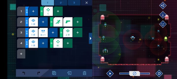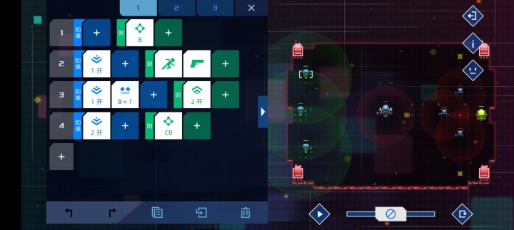 第23关,我是先解决后面那三个小的之后解决最大的我自己运行了两三次,都过了,这三张图片是从上到下的,注意不要把位置搞错了。