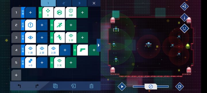 14关,高可读性版元件正常移动,当没有发现目标且准备越过危险区时停止。