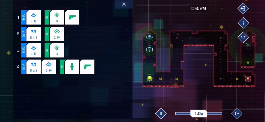 Pc和手游是不是不一样?Pc端我尝试很多种方法都用不了,让我感觉有点不太自由。可以添加一个,第2次激活。1.左边侦察兵第1行,是如果发现敌人就开启1号信号源第二行,如果第2次发现敌人开启3号信号源。2.右边侦查兵第1行,如果发现敌人就开启2号信号源。3.中间的第1行,接收1号信号源往A第2行,接受2号信号源往b第三行,接受3号信号源往a(看到这么多解法,就是知道这游戏很开放。但是