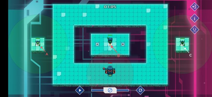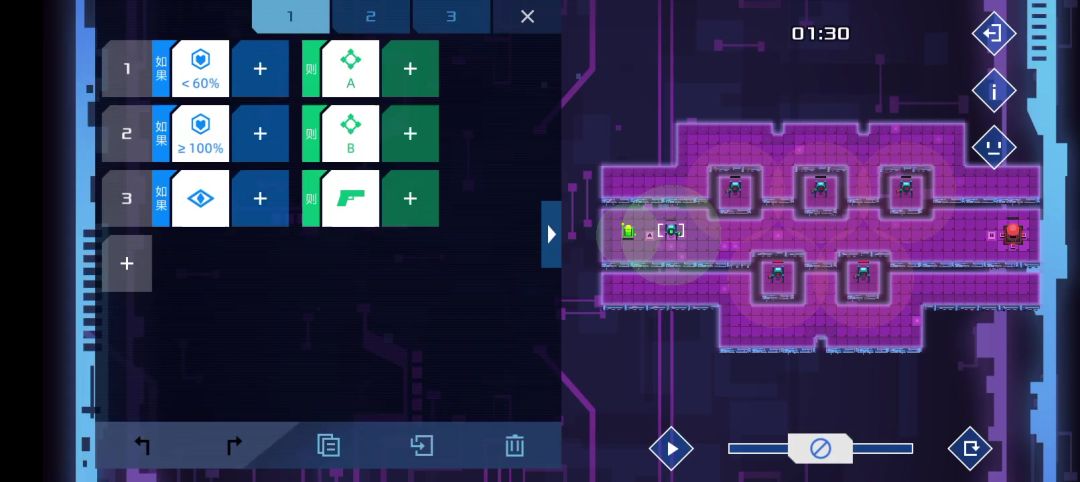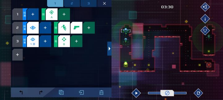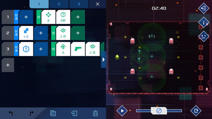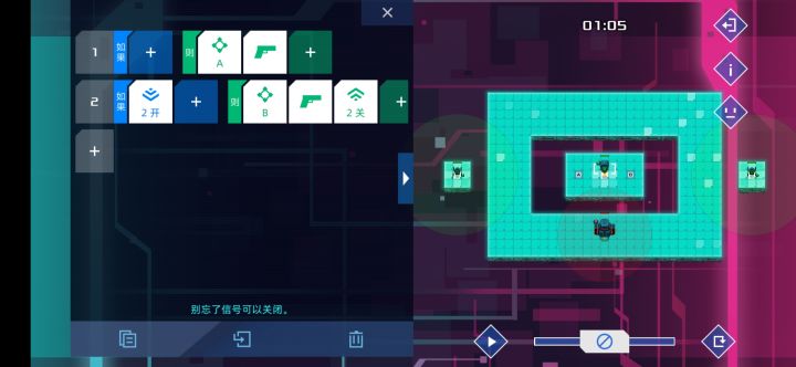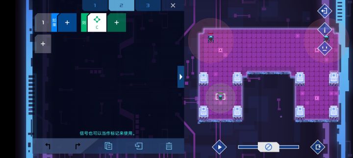 B.第二条指令检测到信号2开,则会向B点移动并开火。当堡垒还在C的范围时,不会触发,B的关闭信号2,堡垒走出C的范围后,触发关闭信号2,B会回到点并开火。击碎堡垒。