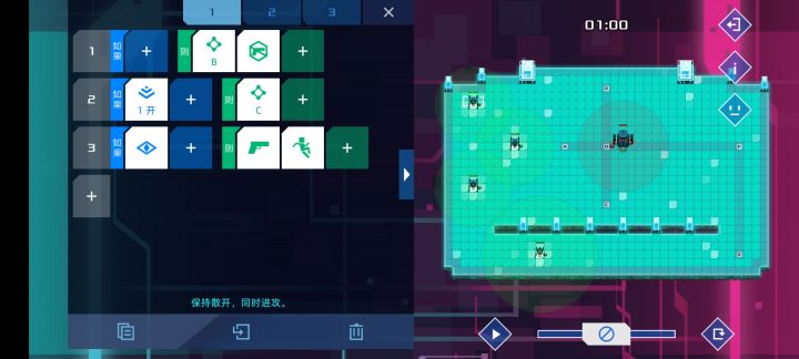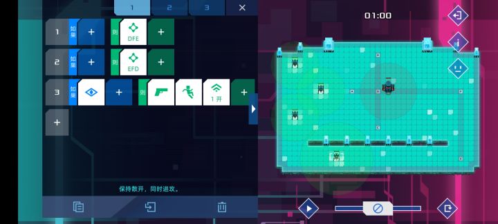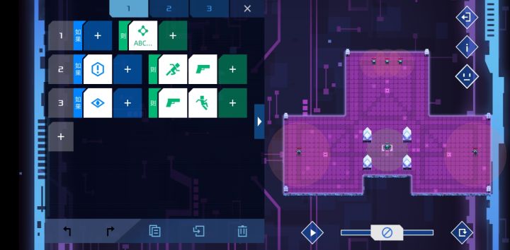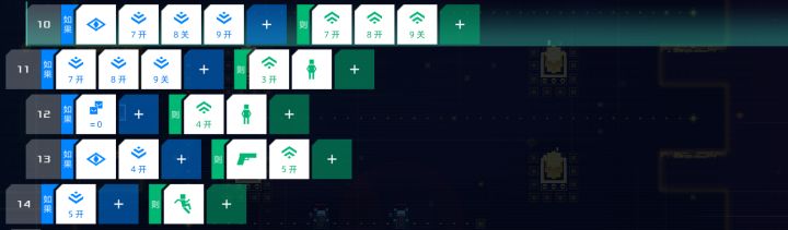 本贴仅记录个人关卡解法01 害羞的士兵简单的关卡没啥好说的。第一行ABGFEZ,第三行EDCB。02 尾行利用了优先级与惯性原理,方法是先向右走,等脱离了敌方视野再开始开枪,这样才能多打中敌人一枪,此外,加上Z>10才站立的限制是因为倒数第二时敌人已经比你快了很多了,会脱离我方视野,如果不加我方会触发站立,导致最后一枪够不到敌人,加上限制后,我方会继续往右走补上视野外的最后一枪三种三行