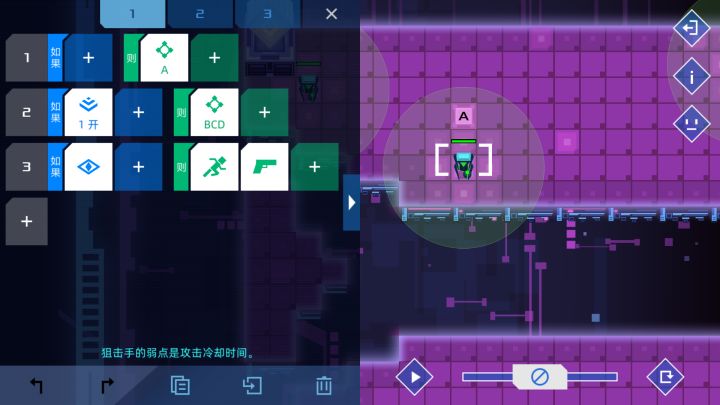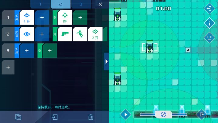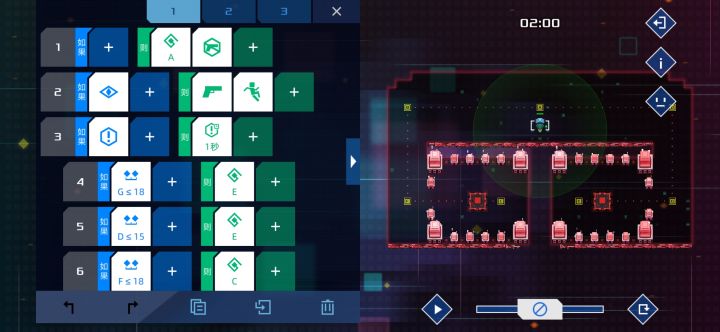 刷关必备,省时省事。只要十一行,平均每个两行。根据红方行动规则,只要红方发现绿方就会撤退和移动向回复站,所以我决定关门打“狗”(侦察兵)。如下图各个机器人行动规则:成功率≈100%,超稳定的说。下附视频: