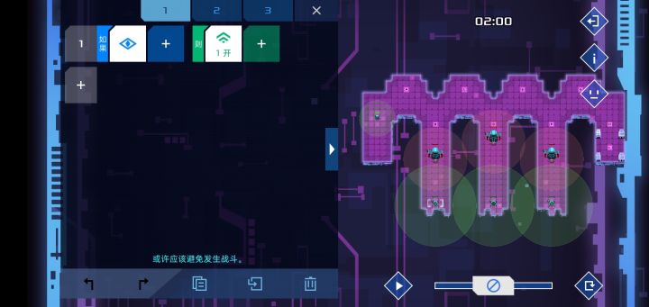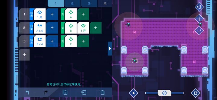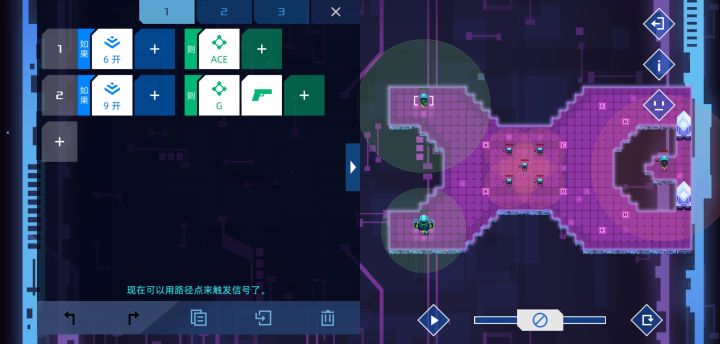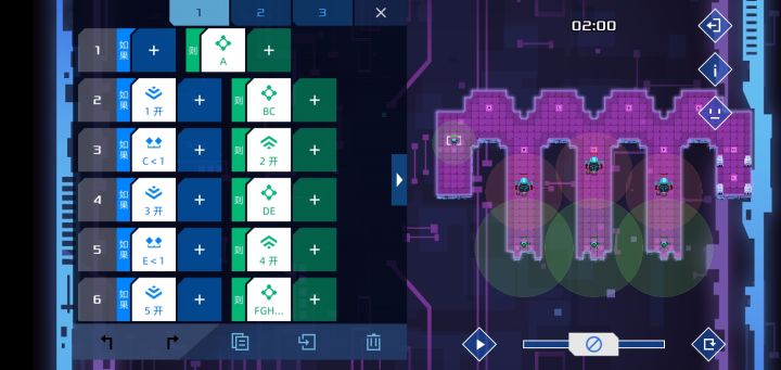 我已经难以言明成功消除了那七八毫秒的差距时的喜悦,在那近百次的尝试中,我终于用一种与常规通关方法截然相反的方式爆掉了敌方核心。 第八关只是新手关,通关方法很明显,用侦查兵引开堡垒,突击兵上去突突突就轻松打爆核心,但是我却固执地去思考,如果反过来,用突击兵引开堡垒,用侦察兵去打爆堡垒,会不会有成功的可能呢?说干就干。 很快我发现了第一个问题,如果两个同时行动,那么突击兵会很快被干掉,而之后四秒后过去的侦察兵也无机可乘。于是我做出调整,借鉴玩《破门而入》时的经验,先派侦察兵接近堡垒,以其较广的视野可以在发现堡垒的情况下发出信号一而不被堡垒察觉,突击兵收到信号一后迅速出发,并在我设置的路线走向D点,而在发现堡垒后马上往后撤退的同时迅速发出信号二,侦察兵收到信号二后马上出发,然后