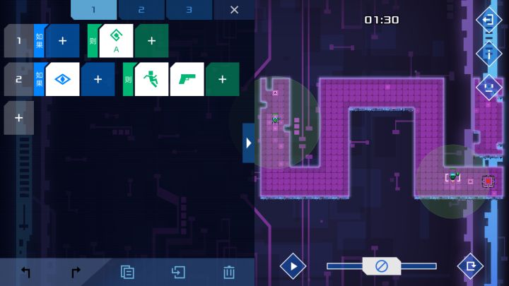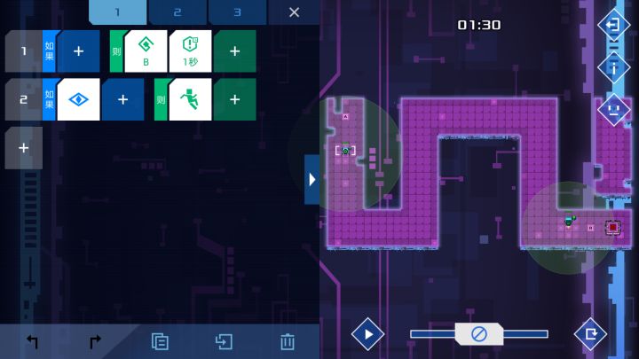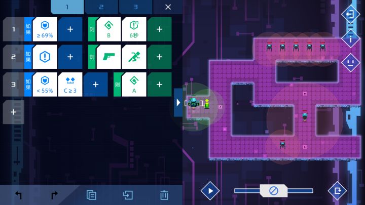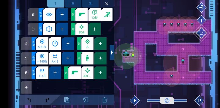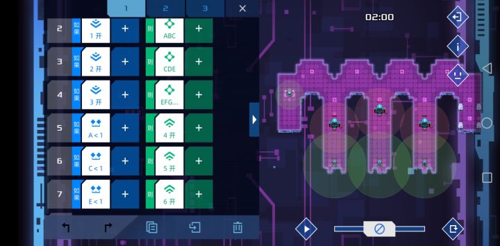 我在一次偶然的尝试中,把那两个指令分别组合为收到信号二后,没有要求,从B点走向D点,不开枪;收到信号二后,如果发现堡垒,停在原地,开枪。这样指令的巧妙之处就在于我消除了侦察兵被发现的可能。根据下位优先级,侦察兵只会执行第二个指令,当侦察兵发现堡垒停下来要开枪时,堡垒已经走出了侦察兵的感知范围,因此没有开枪,然后根据循环指令执行顺序,它将执行所有指令中的第一个:从A点走到B点再走到D点,这个指令就替代牺牲在下位优先级的指令发挥了作用,此时侦查兵终于接近了核心并发动攻击,而突击兵此时已经凉凉,于是我碰到了最后一个问题,也就是最难的毫秒问题,在被吸引,再到消灭突击兵,最后回到原来位置,堡垒的自控力让我怀疑人生,我一度从它身上看到了那些只会守防御塔绝不走出防御塔范围的苟系MOBA玩家的影子,无数次的,还差最后一两炮,我的侦察兵就能打爆核心时,它回来了,并成功吸引了我的侦察兵的注意,停下了对核心的最后一击,当时我的内心是崩溃的,就像对面皇家塔在决胜环节靠丝血爆了我方的公主塔一样,我反复试了很多次,都是没办法突破那毫秒的差距,哪怕堡垒歪了一步,我的侦察兵就能顺利打爆核心,可惜那只是奢望。在无数次失败后,我终于找到了一丝曙光。因为这个游戏中,异常元件在相同的指令中,碰到相同的平面时,却会有细微的偏移,恰恰是这细微的不同,元件走出了一条完全不同的轨迹,而我成功的希望,就寄托在突击兵的走位上,我于是一条一条轨迹去试,从C到A从C到D从C到B,从C到B到C从C到A到B,最终还是在从C到D中找到了那条唯一的正途,最关键的是,如果要突击兵恰好走出那个走位,而堡垒也恰好被吸引走多了一步,需要多次sl大法的辅助,然后就呈现出了视频中那短短几十秒的反向通关的惊艳,我不能说这有多了不起,但是我却仍清楚地记得成功刹那的那份喜悦,而这就足够了🙃🙃🙃