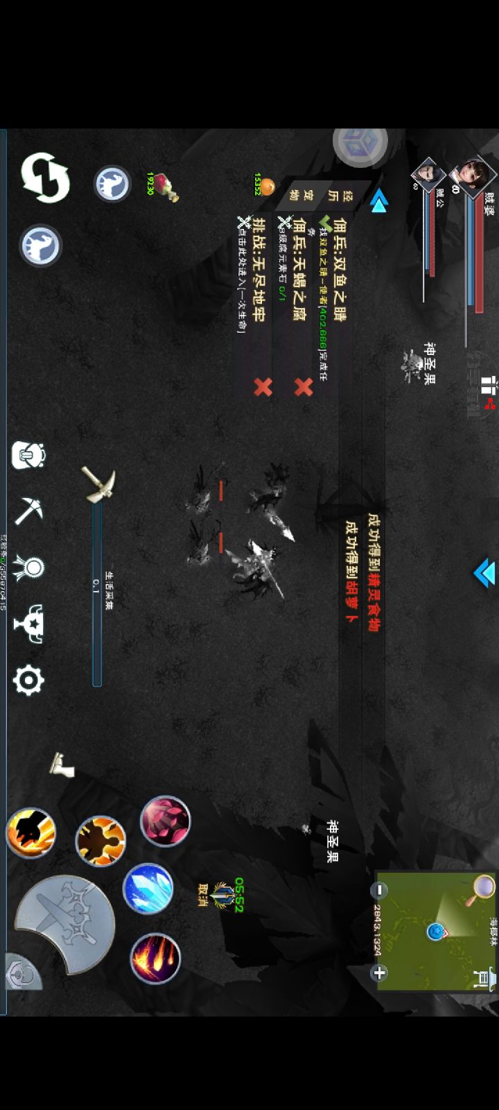 给大家安利一个刷神圣果的好地方刚才截图没截到,刚好同时出了神圣果和精灵果,这个位置没有怪,是在海椰林和南方森林中间,设定18-20秒刷新资源和回到原点,大概五次左右会出一个神圣果,这个效率属于很不错的了,在有怪的地方需要五分钟一个。