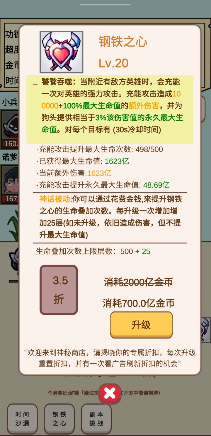 心钢层数打到450以上会出现问题,生命叠加单次最多只能加2147483647但是理论上应该已经超过这个数了,导致生命由指数增长变为线性增长,建议更换变量类型
