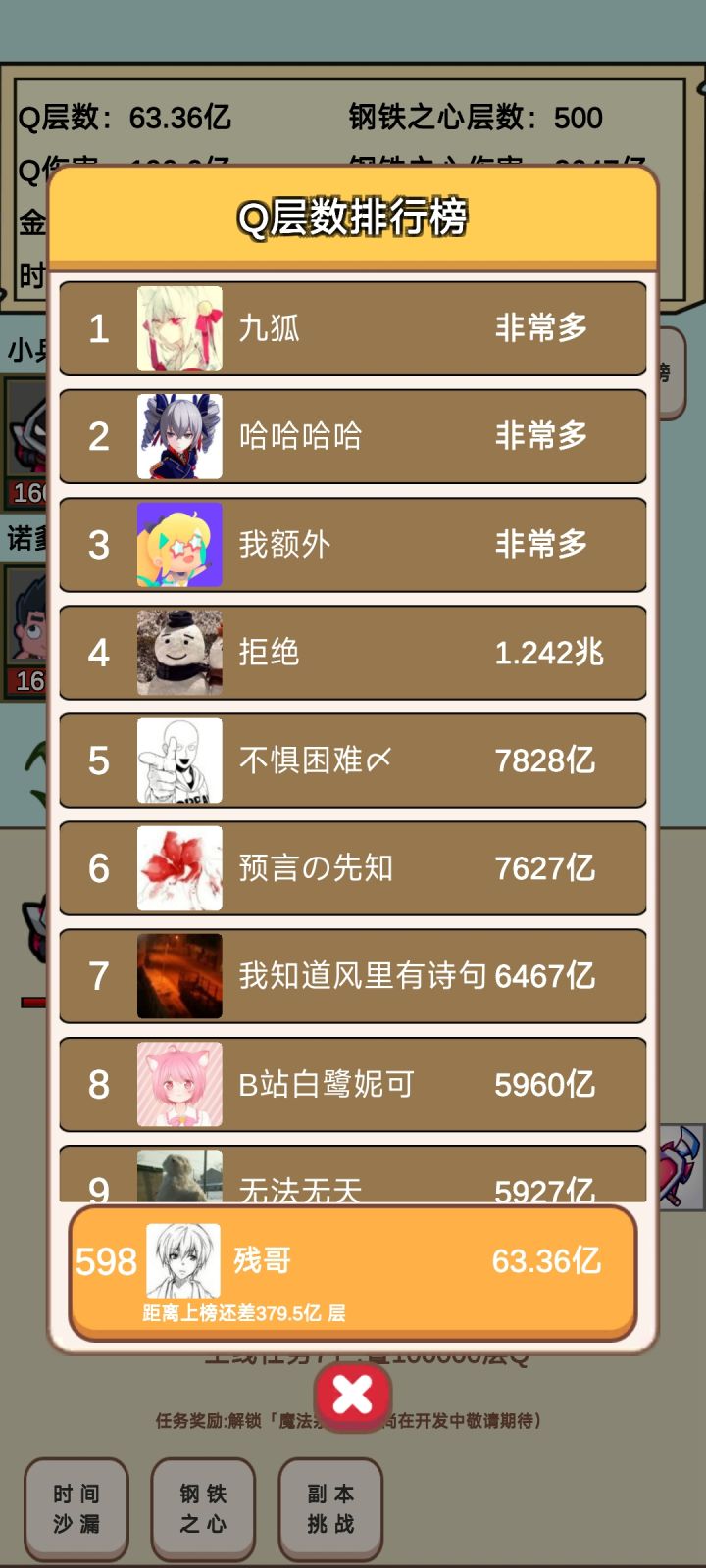 刚开始有几个开了的刷上去都呆不了多久就消失了,看得出来想要维护排行榜,但是现在貌似摆烂了,逆天层数在榜一挂了两天。。。算了,摆了,祝蒸蒸日上。