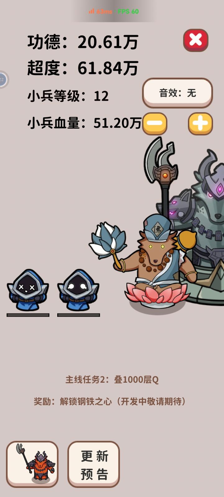 我觉得作为一款木鱼类游戏up主做的真的很不错了,但是咱们名字取的“狗头模拟器”说明吸引来的大部分玩家还是英雄联盟或者狗头吧的好兄弟们,所以提一两个小建议。第一个是希望可以加一个音效,就是游戏狗头叠Q时发出的那声“哈~”,第二个是UP主可以把叠Q的速度分为三个档位“较慢 正常 较快”较慢的时候可以有狗头的嘲讽语音“软弱无力”;较快的时候狗头模型变大也就是开R,游戏里减CD,咱们这个可以加伤害,满足联盟玩家原汁原味的叠Q体验时还可以增加游戏的趣味性,希望采纳🙏