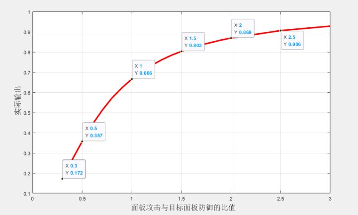 x轴:角色攻击/目标防御y轴:实际打出的伤害/角色攻击当攻击为怪物防御的2倍时,面板攻击收益下降较多。可以根据面对怪物的防御自己搭配技能来做到伤害最大化。数据参考:Blank大佬统计的伤害表借花献佛,做成图片更直观一些。服务器:雷鸣高坪id:163070