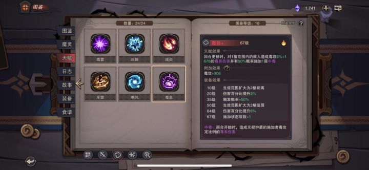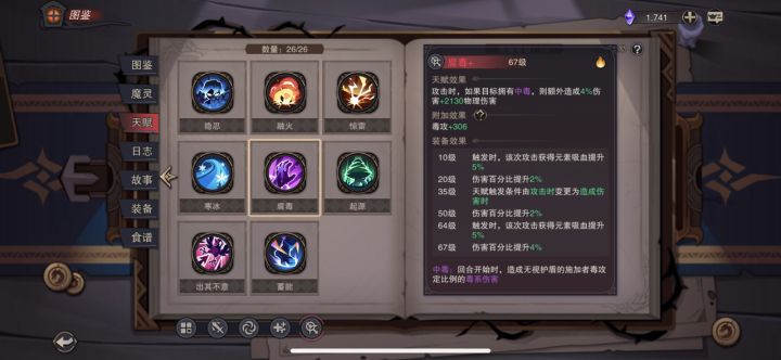 【人物天赋之毒系天赋】铛铛铛,今天是四元素最后的一种“毒”系元素啦!大家期待么,话不多说,进入正题,毒系元素本人测试的不多,主要是它太墨迹了,需要不断的去叠加buff,但是伤害是真的恐怖,完美真实伤害,无论你多少的盾和防御,我通通无视,先折磨到你奔溃,然后在一击必杀…“毒系”还自带高额的恢复效果,生存能力只略低于冰系。很适合喜欢操作的宝子们!你爱了么?服务器:全知之书ID:1982角色名