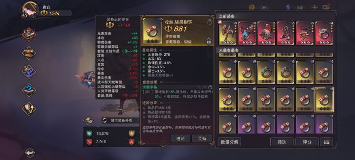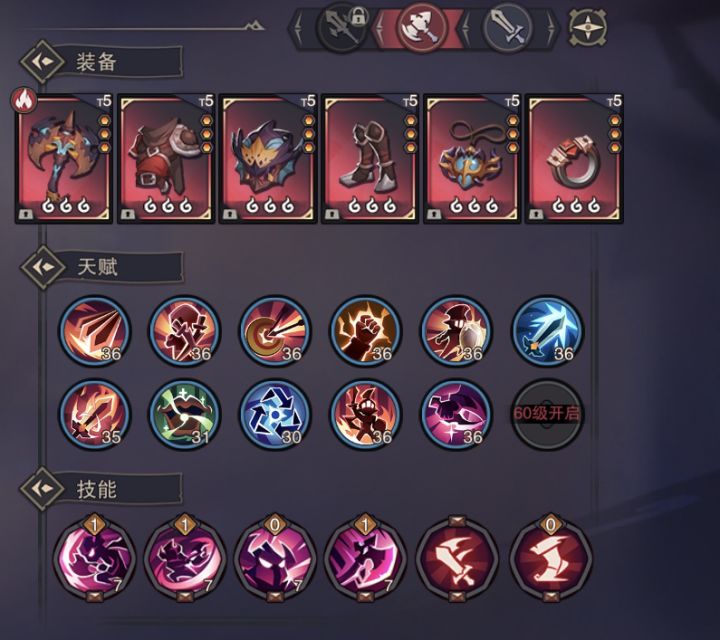 焕发【3件】行动时,每获得1个行动点,攻击提升4%,可叠加10层,行动结束时重置充能水晶:t4也有【3件】累计消耗15%魔法时,元素攻击提升0%,可叠加3层,持续到战斗结束奋战【3件】拥有负面状态时,攻击提升16%生命澎湃【3件】生命超过上限时,获得溢出量30%的护盾t5套装可以延续t4,物理火可以2收2灰2先锋,4先锋2收割,4先锋2盾。斧头可以玩冰或者火,我的天赋在下边玩的冰