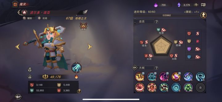 1.开始固有有4天赋的魔灵才开始养2.紫色中最值的养的分身龙(肉盾),烛灵公主(回血)。3.金色最值的养的是国王(肉盾,加行动点),依希尔(群体回复减伤)4.魔灵每升一级加1~3条资质,魔灵进阶等级最高为60级,每十级突破一次,有几率开天赋格,白,绿100%,蓝80%,紫60%,金50%。没开格子可以通过潜能碎屑补5.魔灵60级后可以补5次资质,补资质需要潜能碎屑,潜能碎屑获得方式如下图