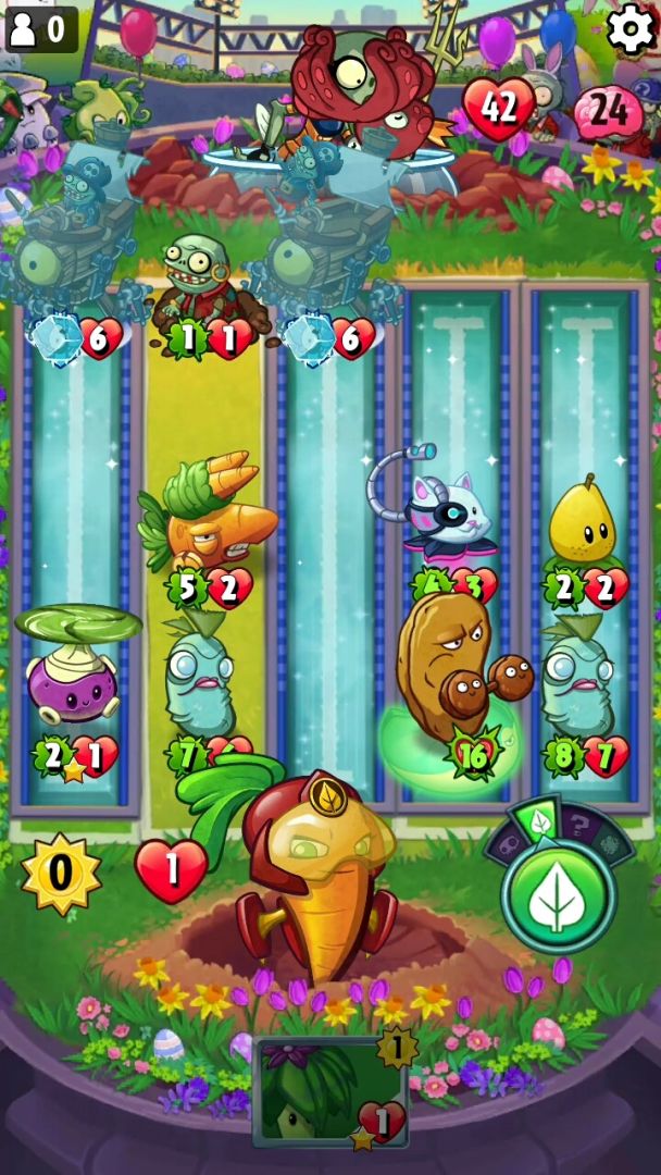应该是唯一解法了,缺一点伤害也不行。注意摆放顺序。第一行先放,然后冻结两个陆行船。猫尾草4,然后放睡莲,梨子放5,海洋豆5,坚果放睡莲上,加两个生命加倍。剩下胡萝卜和海洋豆全放2