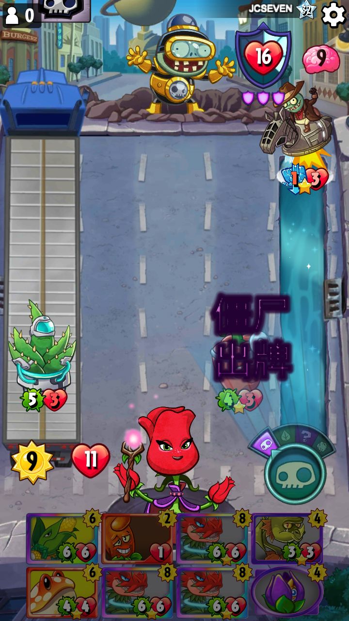 刚开始我还想着1/1僵尸打不死加拉塔仙人掌,准备用第二个火龙果清场😂