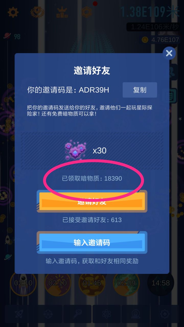 打开设置点击分享出现分享页面后点击点击取消,点击取消,取消。然后就算分享好了,网速够快一分钟就刷满了技能建议就学这三个后期手动点击没卵用。外星人舞厅任务等你飞到一定星球就解锁科技花点金币买就行了(好像是13关具体也记不清了)
