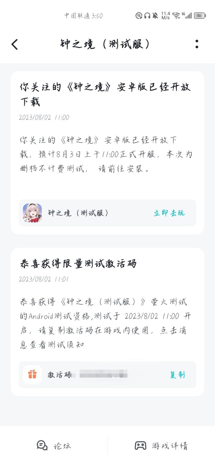 亲爱的王女殿下:「辰星测试」已经正式开启啦!测试时间:2023年3月8日11:00 - 2023年3月10日23:59测试类型:限量不计费删档测试TapTap测试反馈群:已获得测试资格的王女殿下可前往TapTap【代号:境(测试服)】进行客户端下载。同时可以加入TapTap测试反馈群:与大家一起交流游戏感想哦~在测试期间,王女殿下如遇到任何游戏相关问题,或对本次测试内容有意见与建议,
