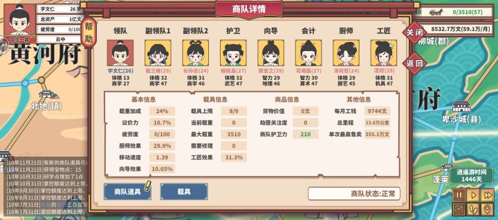 先归类一下萌新前期可能不会注意到的要点:在那之前建议,那20个新手任务看看就好,就当参考和熟悉1.村级的车最多升到1级,所以有了钱了就赶紧去县级以上的城市换新的载具,但前期的钱最多够买到郡,而且郡级只能买一辆(升级载具推荐去州级城市升级,城市等级太低有的载具升不了)2.前期推荐在一个州府的区域范围内刷贡献,等到了府总贡献100以上就能在府所在的州级城市探索获得商队道具,个人推荐走南方府,因为
