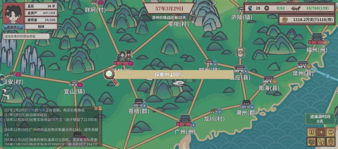 我知道写评论运营商也只会当我放了个屁但我想拿下全国所有的财富,我这个屁会不会更响一点。总的来说游戏很有趣,近几年玩过最有意思的跑商游戏,但也只是跑商,除了跑商没有任何可玩性。说下缺点1.是商行的机制问题严重,玩家的视角要对抗所有商行,等于在前期同样行动力的情况下,有 5 个行动力在和你抢市场。而后期他们因为不会使用商战就一方面倒。如果换成每个城市可以驻扎多个商行而不是两个。而且每个商行互相