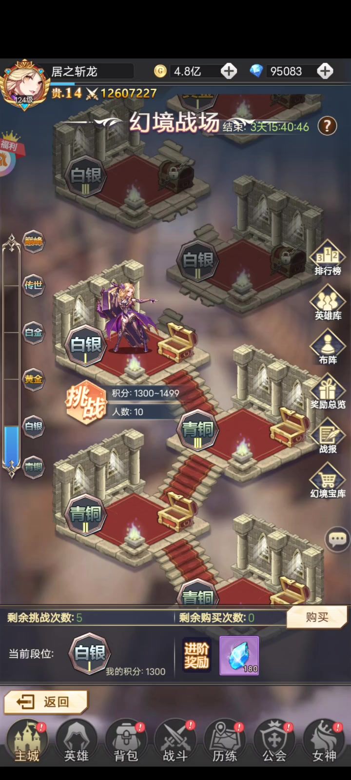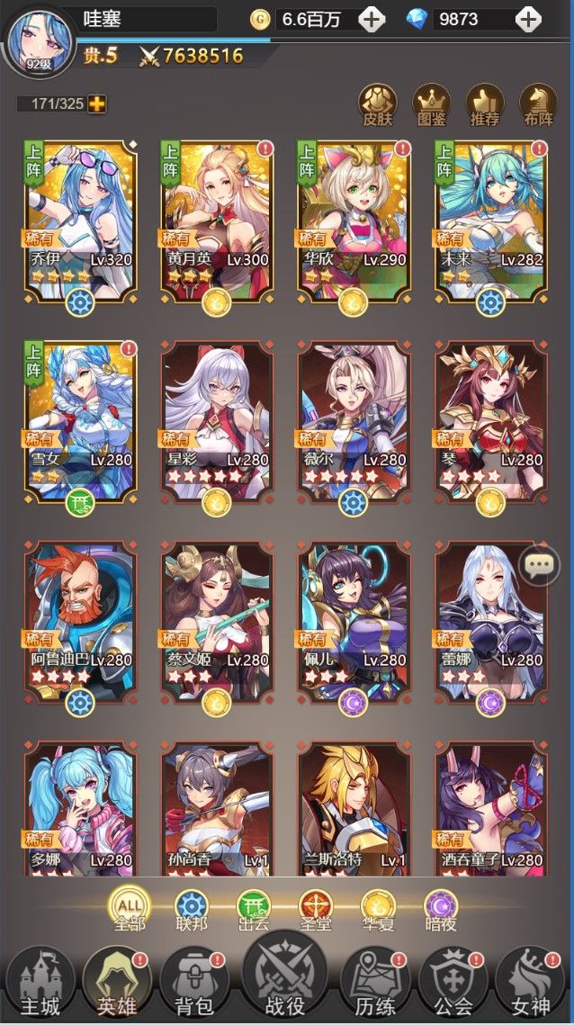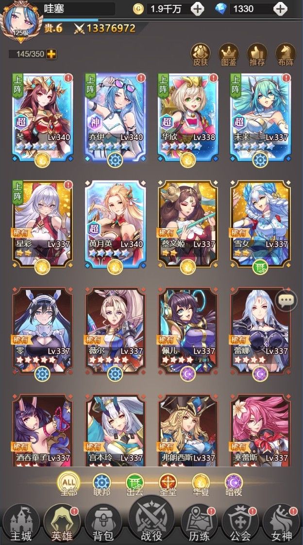 本人H5端玩家,游戏时长至今接近3个月,小V,截图时只是V5。用的是大多人嗤之以鼻的联邦,都说弱,后期一个塞蕾斯顶3个乔伊是吧。看人物战力图,估计氪金大佬瞧不上,白嫖党呵呵一笑的水平。毕竟主C乔伊只有14星。副C黄月英13星,星彩更是只有10星,这怎么玩?2队平均8-10星,基本都是大佬做狗粮喂主C的水平,就这样一个队居然能打通噩梦试炼塔380层你信么? 丛林,深海也通关了?这可能么? 真就是事