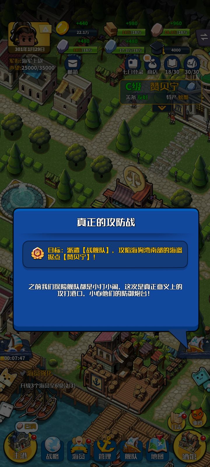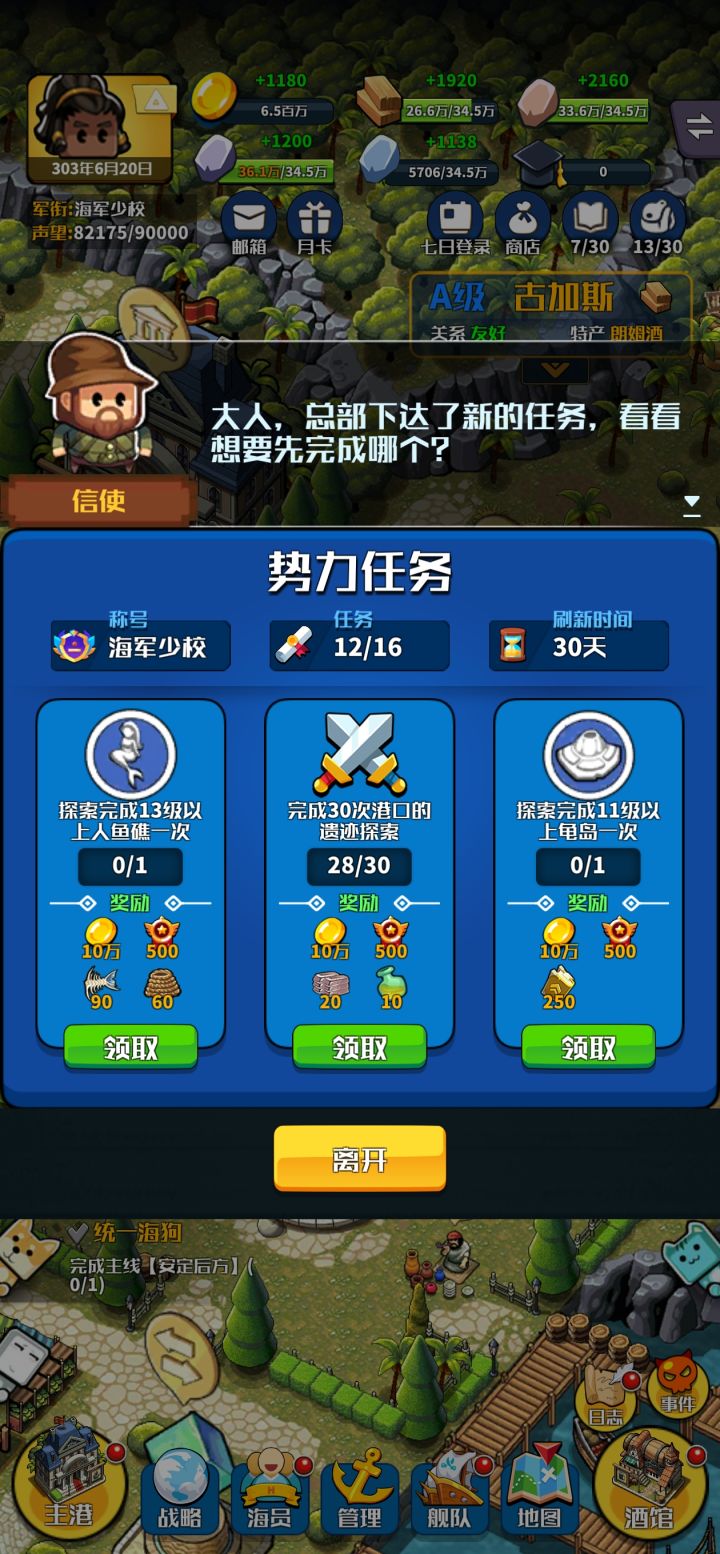 感觉七海这个模式很割裂,至少我现在前期玩的挂机收益很拉,而钱的主要来源货物补充又不按现实时间,导致我得开着这游戏在港口挂机才行(后台时间还不动),钱不经花,三船从一个港口跑到另一个港口食物都要花一万……水手也贵的蛋疼……本来贸易攒了四十造个史路普补充下水手钱基本就没了……也不知道是不是我的错觉感觉海战被打水手损失的好像比原版要多,好久没玩了,建议再加个补充货物的现实时间,比如每天零点,前期真的坐牢