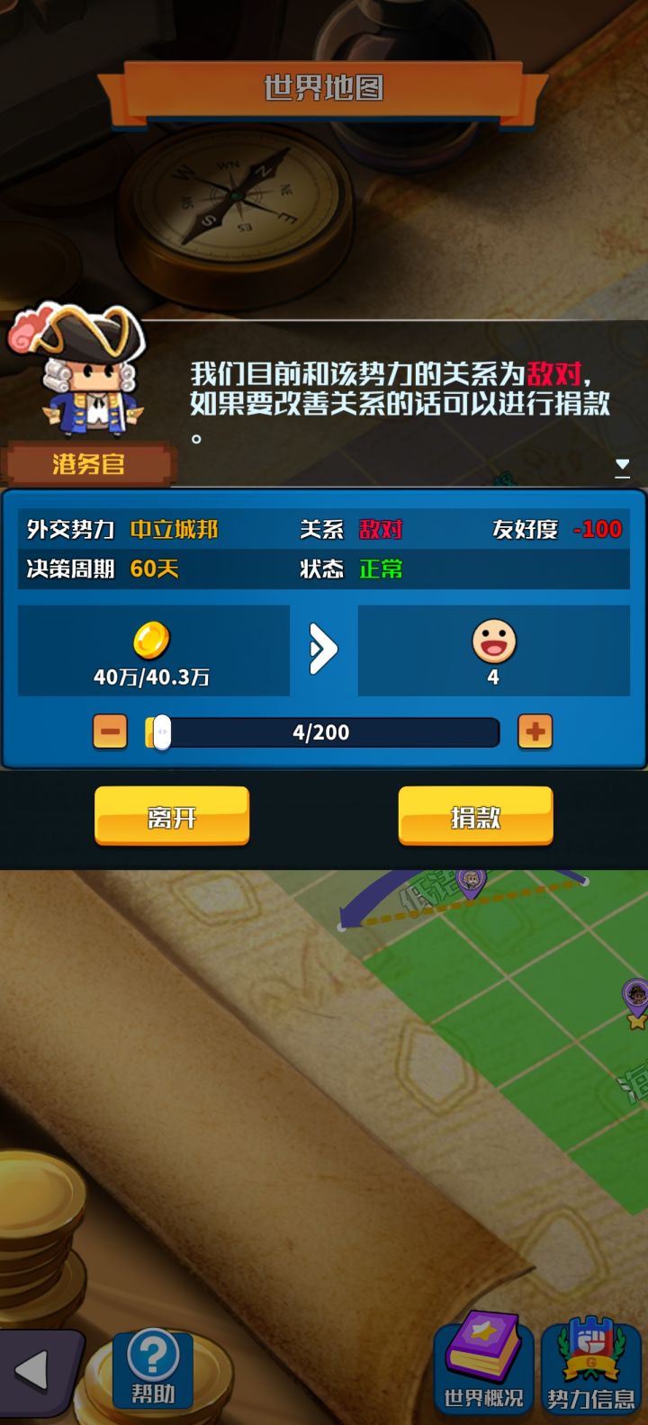 牛头不对马嘴的,势力好感自动恢复是没有的,但不管关系多糟糕都可以捐钱,你这个说明的内容完全是错误的呀